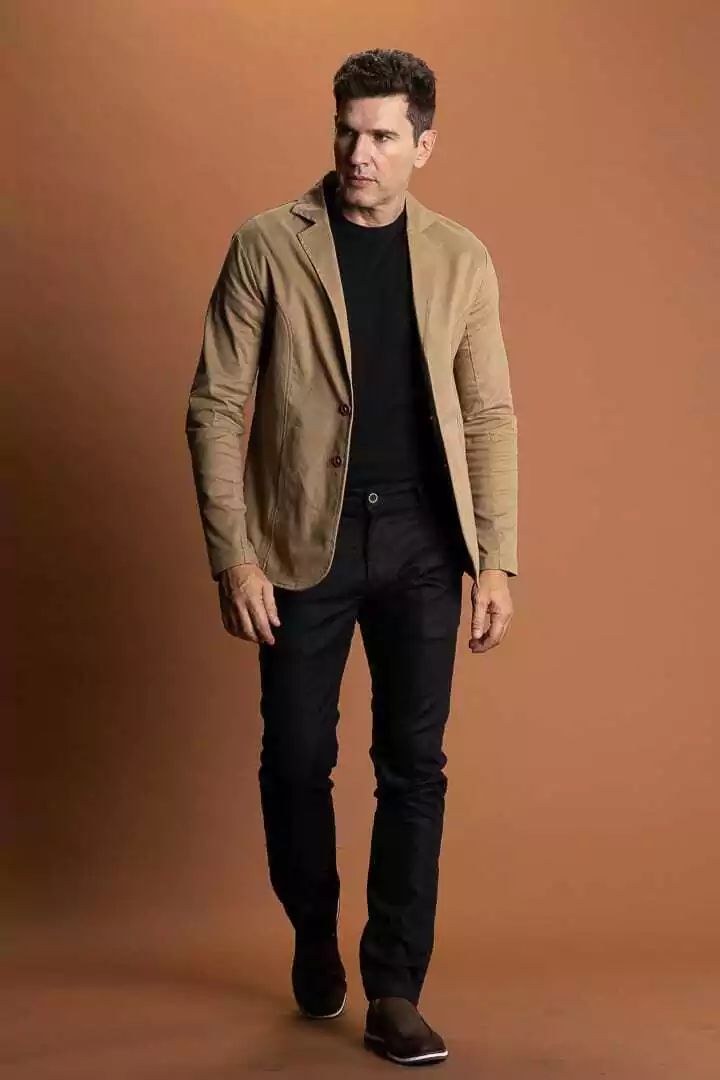 O blazer de sarja com elastano caqui é uma peça de vestuário versátil e confortável, feita de sarja, um tecido durável e texturizado, com adição de elastano para proporcionar elasticidade e flexibilidade. Essa combinação oferece um ajuste mais confortável e uma maior liberdade de movimento. O blazer de sarja com elastano é uma escolha elegante para diversas ocasiões, agregando estilo e sofisticação ao visual masculino.