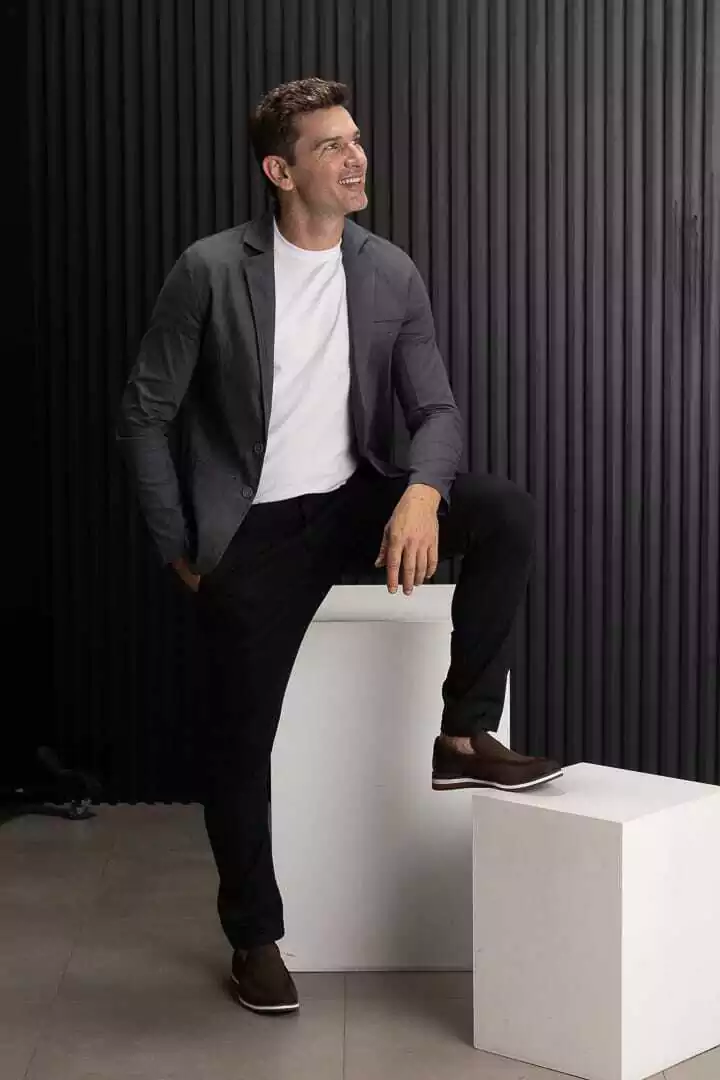O blazer de sarja com elastano grafite slim fit é uma peça de vestuário versátil e confortável, feita de sarja, um tecido durável e texturizado, com adição de elastano para proporcionar elasticidade e flexibilidade. Essa combinação oferece um ajuste mais confortável e uma maior liberdade de movimento. O blazer de sarja com elastano é uma escolha elegante para diversas ocasiões, agregando estilo e sofisticação ao visual masculino.