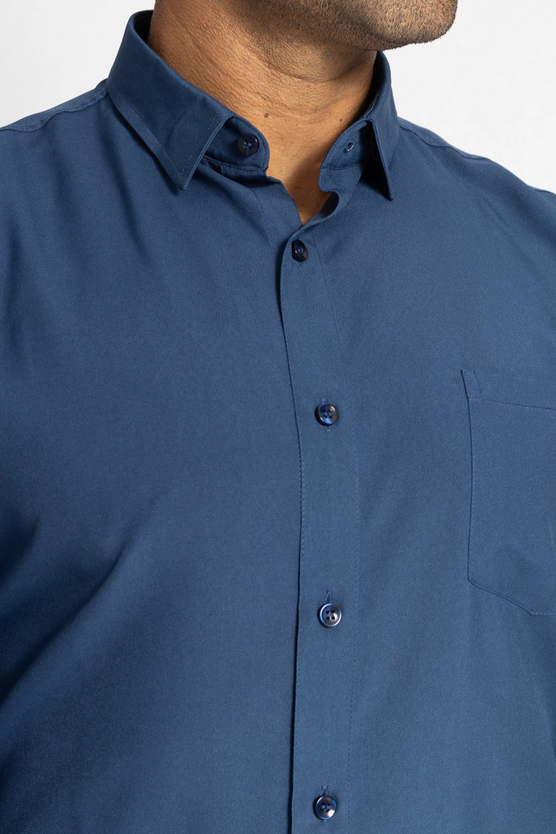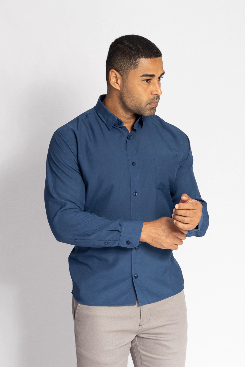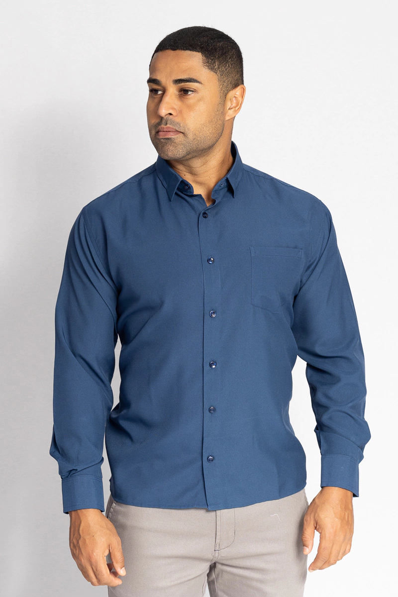 Descrição: Camisa de Microfibra com Bolso Tradicional Confort Azul Petóleo, confeccionada com poliéster, passa fácil