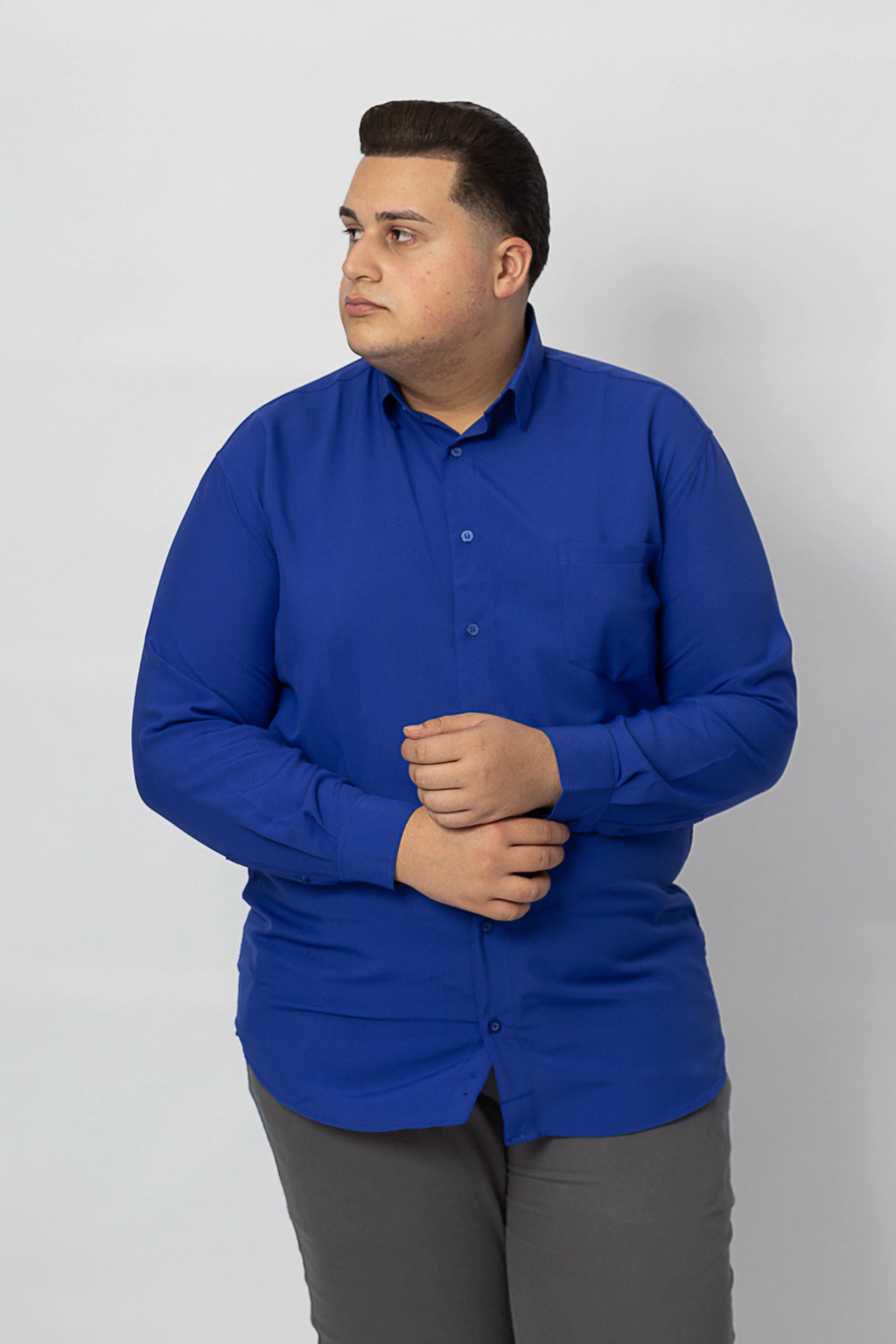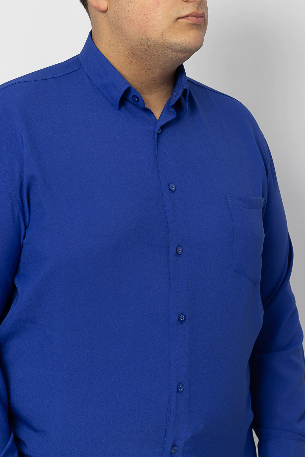 Descrição: Camisa de Microfibra Plus Size com Bolso Tradicional Confort Azul Bic, confeccionada com poliéster, passa fácil