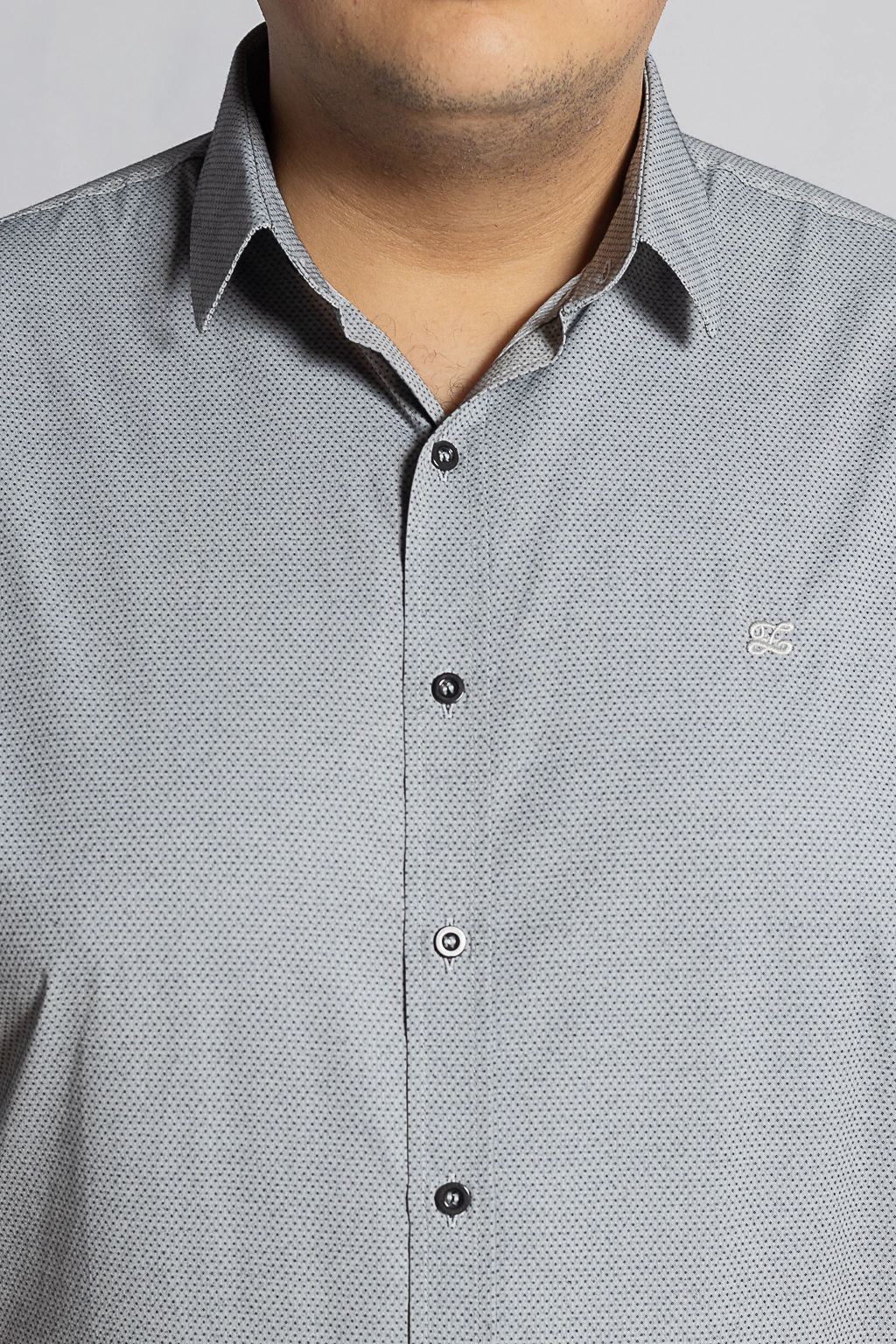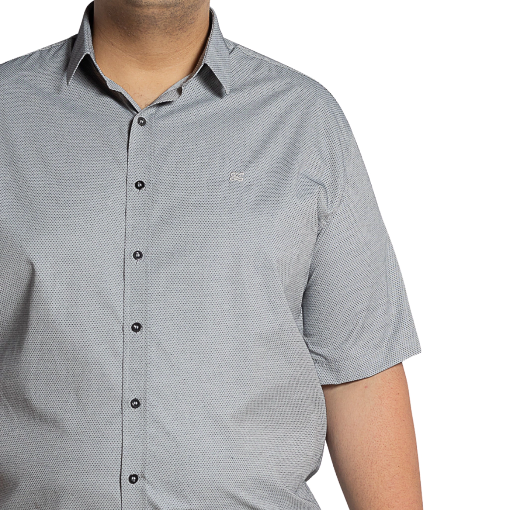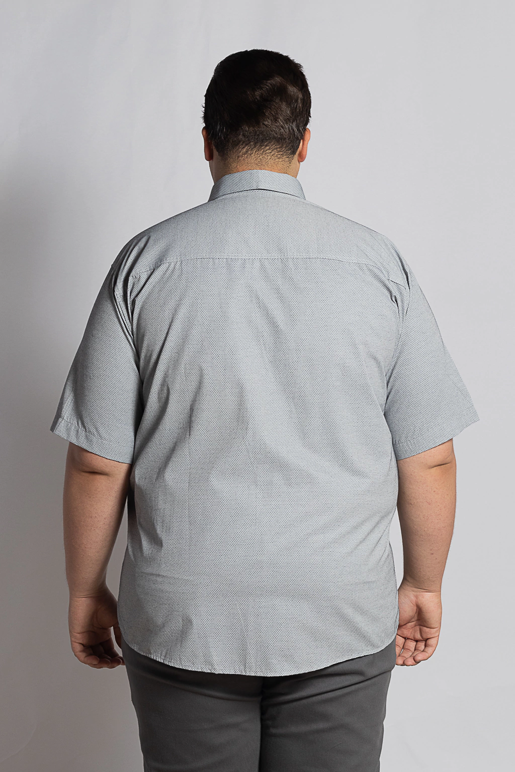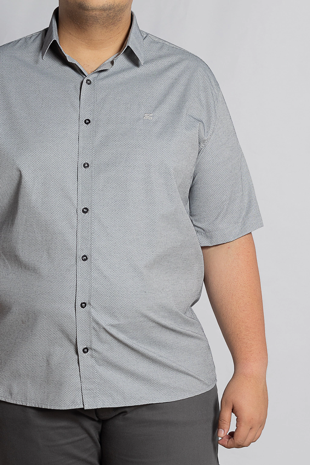Descrição: Camisa Social Manga Curta Plus Size Mista Cinza