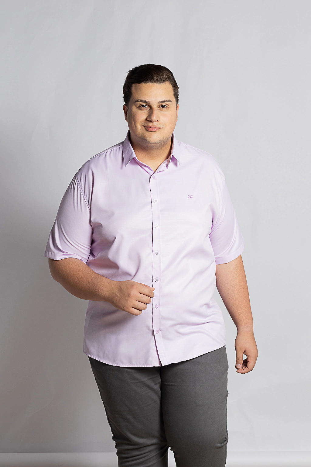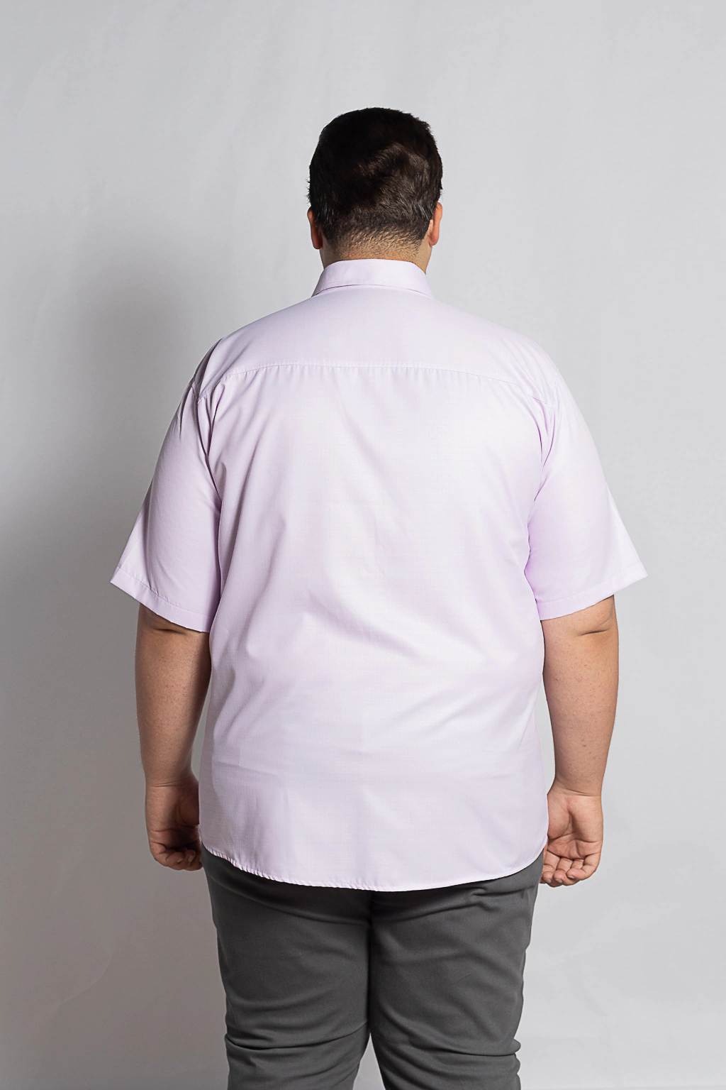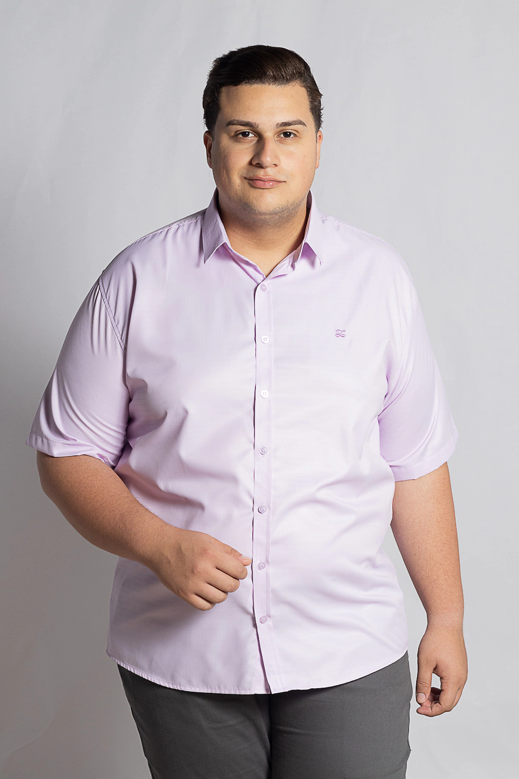 Descrição: Camisa Social Manga Curta Plus Size Mista Lilás Lisa