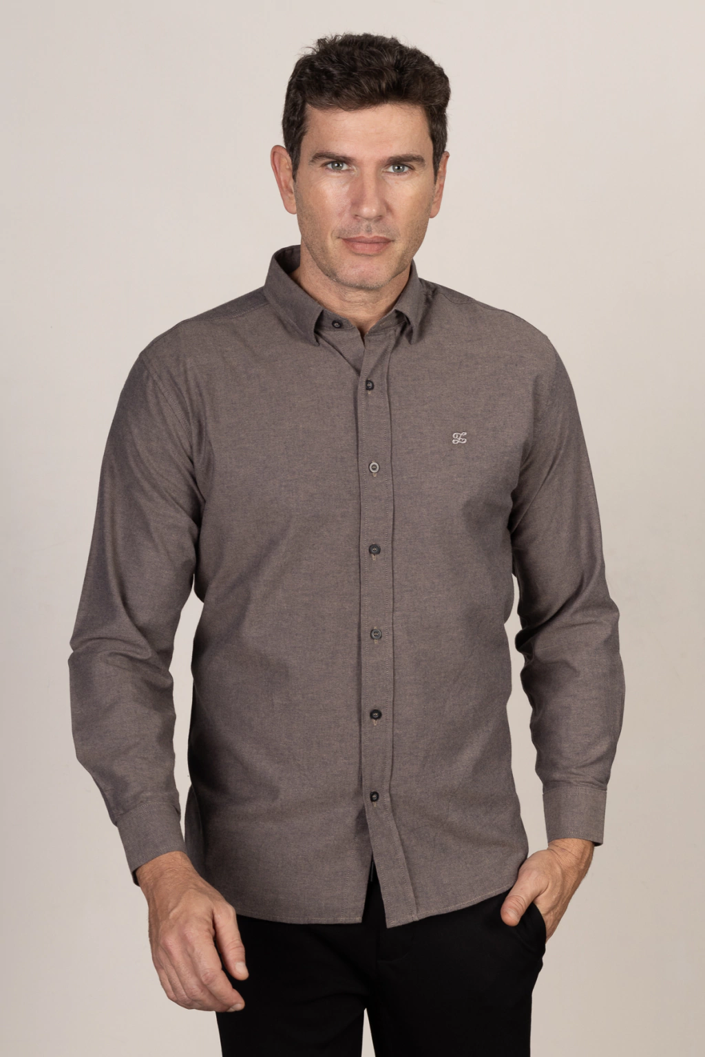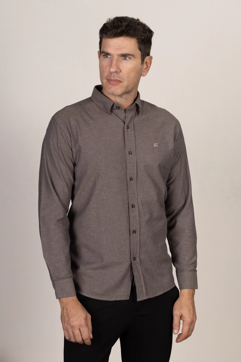 Descrição: Camisa Linho Tradicional Flanelada Grafite , confeccionada com algodão, colarinho francês