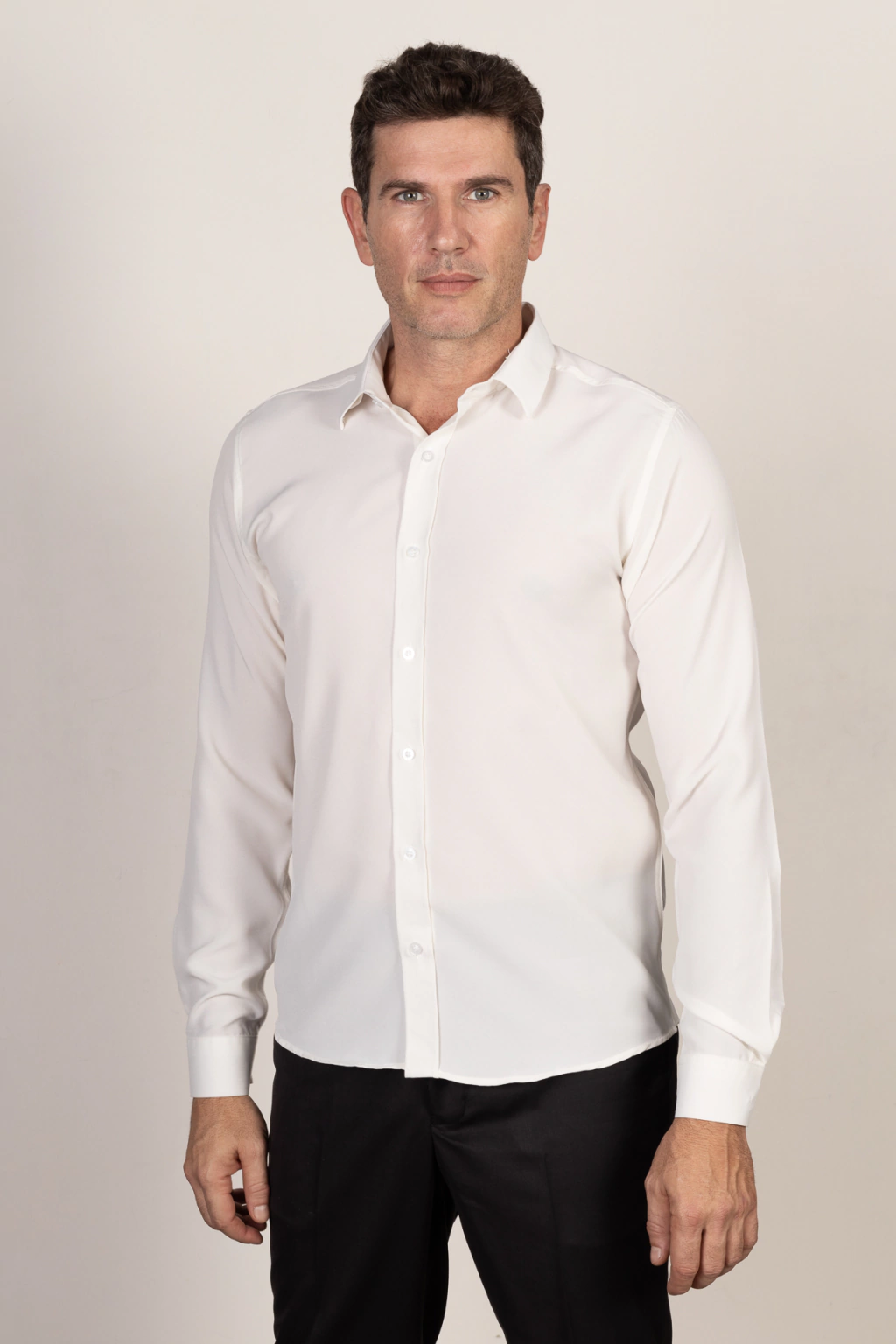 Descrição: Camisa Microfibra Slim fit Bege, conhecida por ser “passa fácil”, colarinho francês