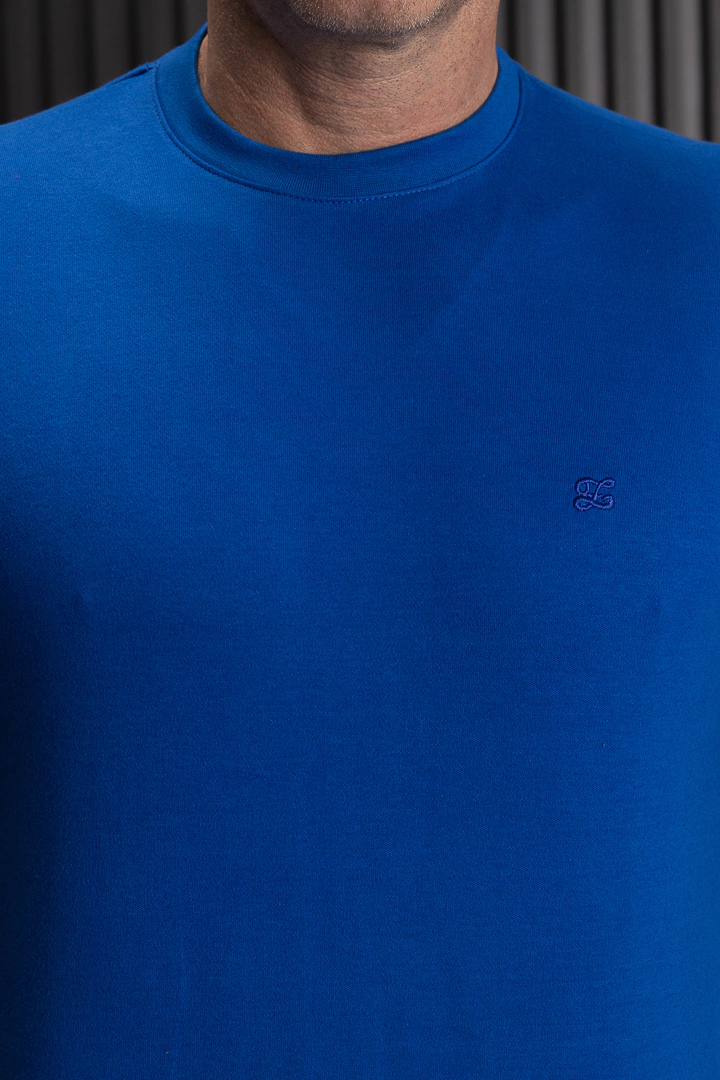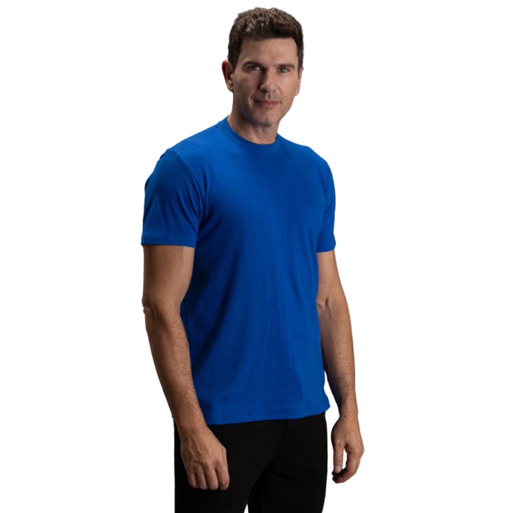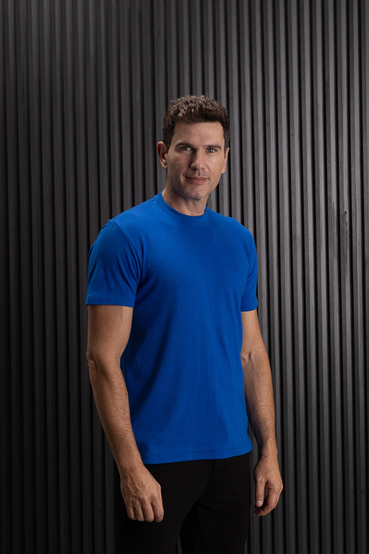 Descrição: Camiseta Básica Gola Careca Azul Royal de Algodão Slim Fit