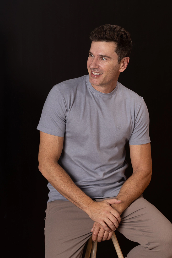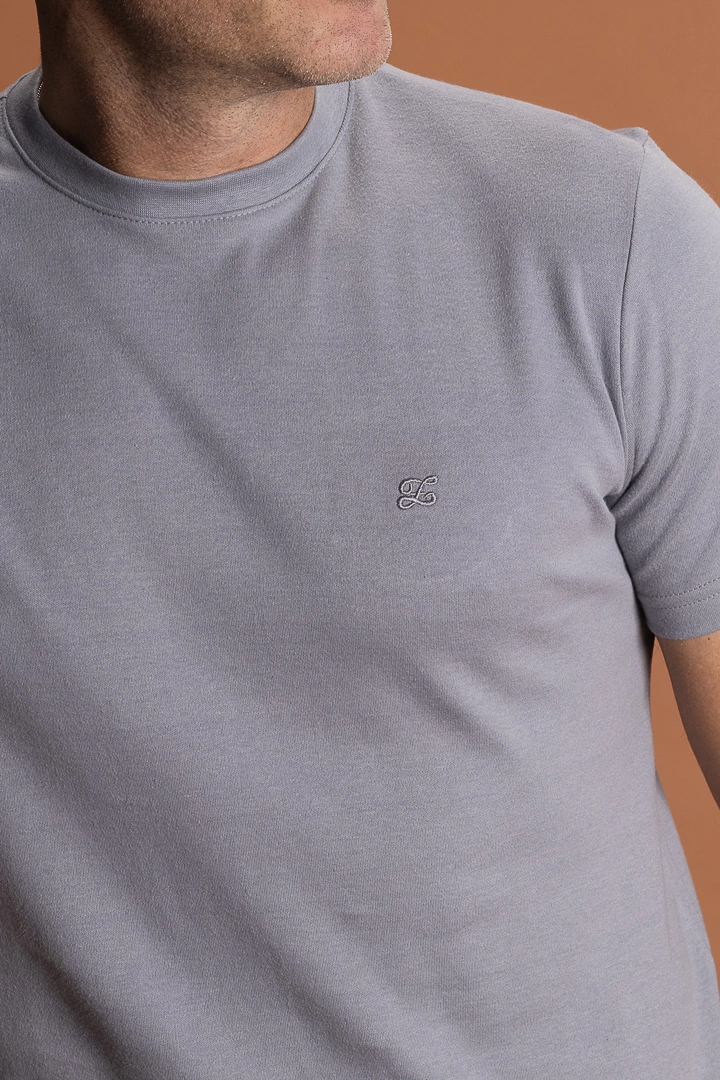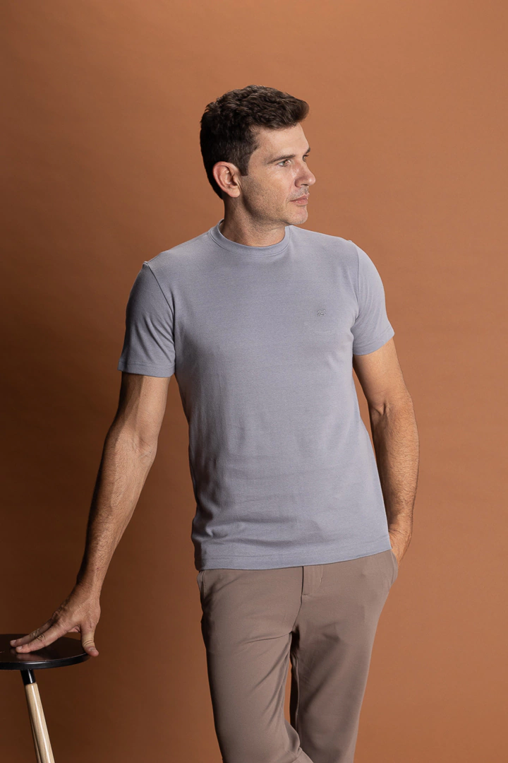 Descrição: Camiseta Básica Gola Careca Cinza de Algodão Slim Fit