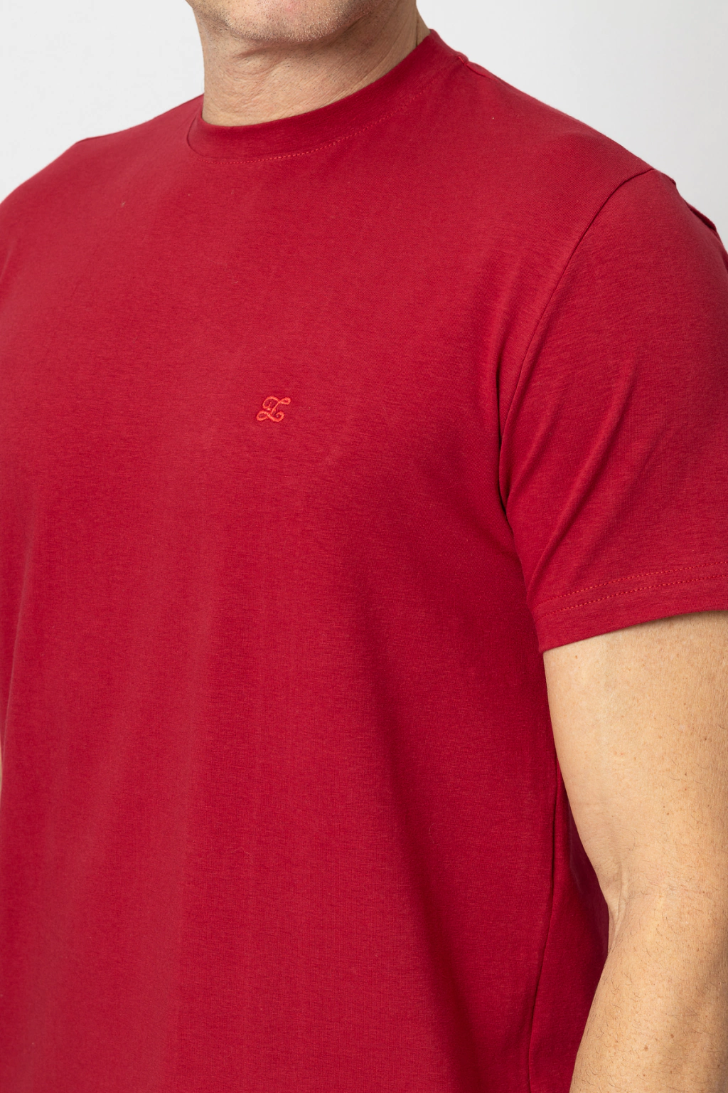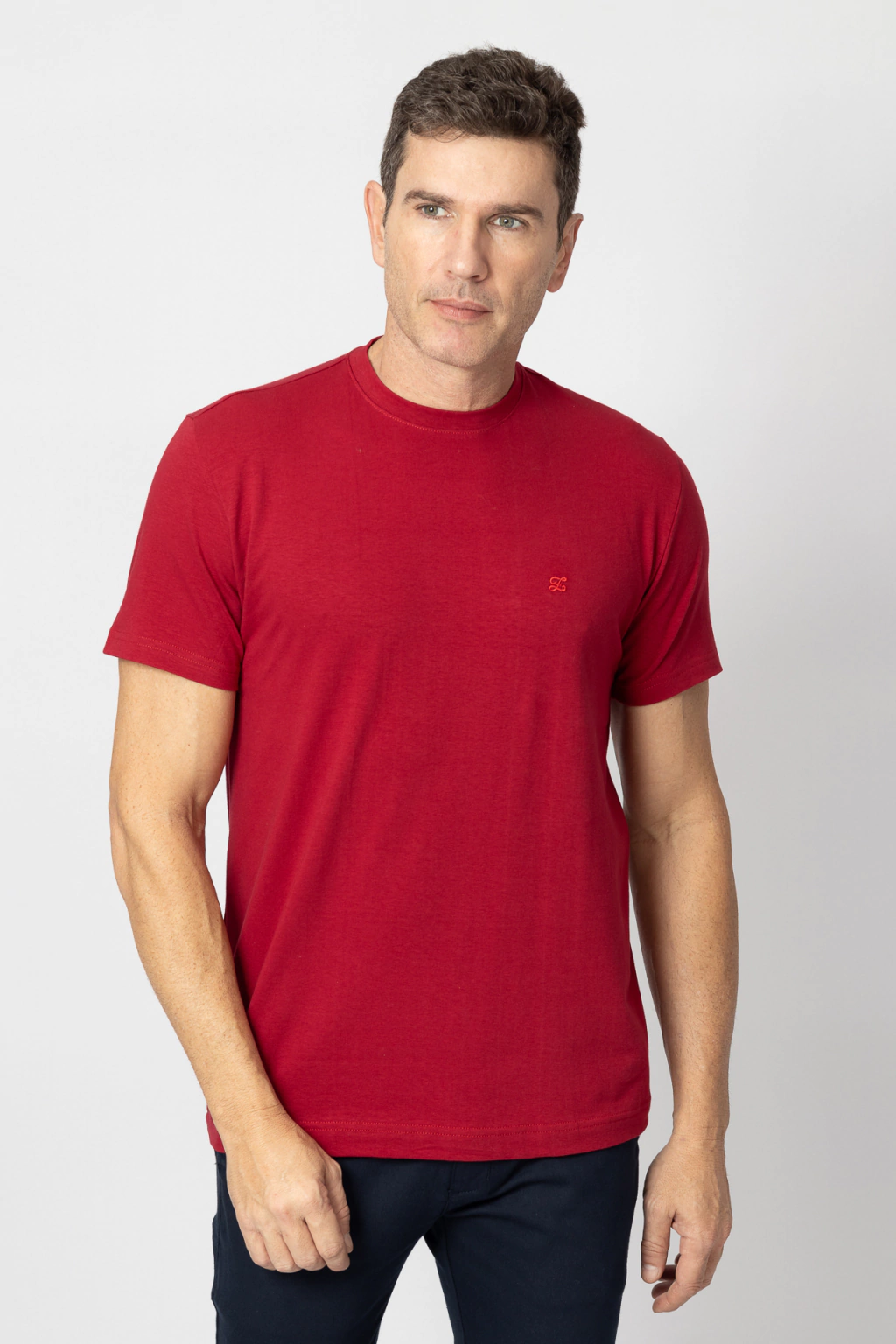 Descrição: Camiseta Básica Gola Careca Vermelha de Algodão Slim Fit