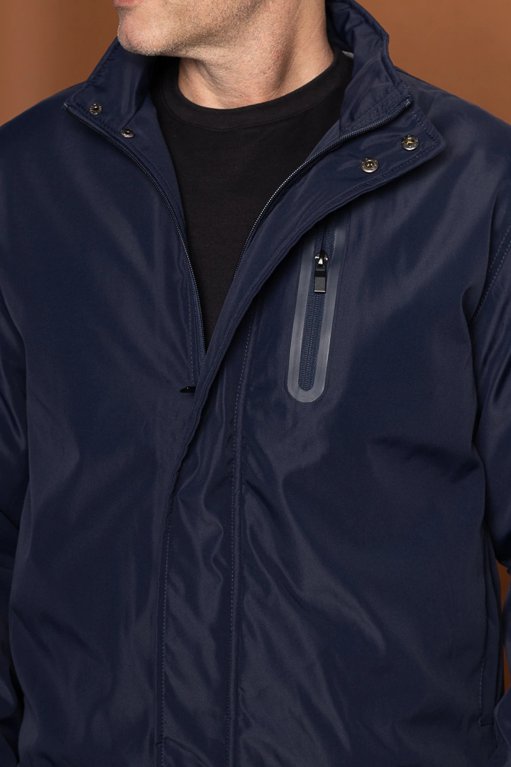 Descrição: Jaqueta Microfibra Confort Tradicional Azul Noite, com 2 bolsos externos com zíper, detalhe de um bolso lateral frontal, botões e zíper no fechamento da peça.