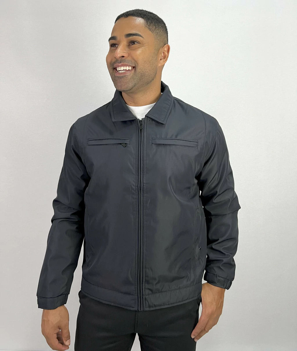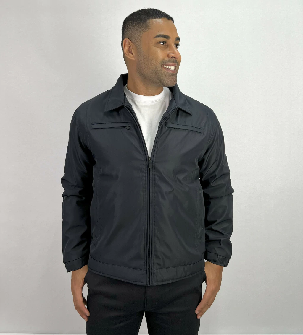 Descrição: Jaqueta Microfibra Confort Tradicional, com 2 bolsos externos com zíper, detalhe de um bolso lateral frontal, botões e zíper no fechamento da peça.