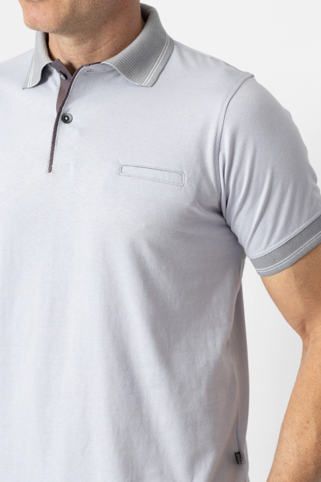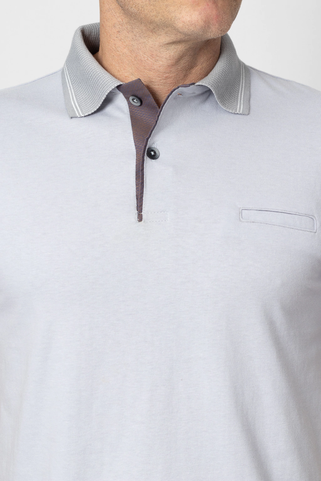 Descrição: Polo de Algodão Slim Fit Cinza, com detalhe de três botões