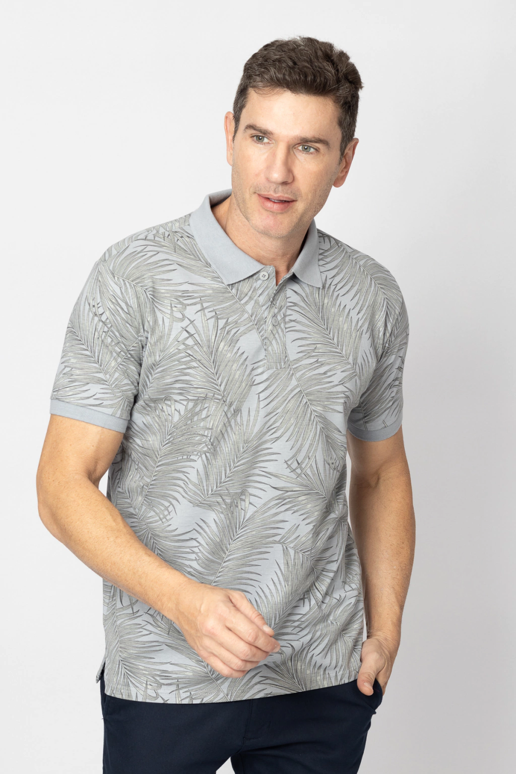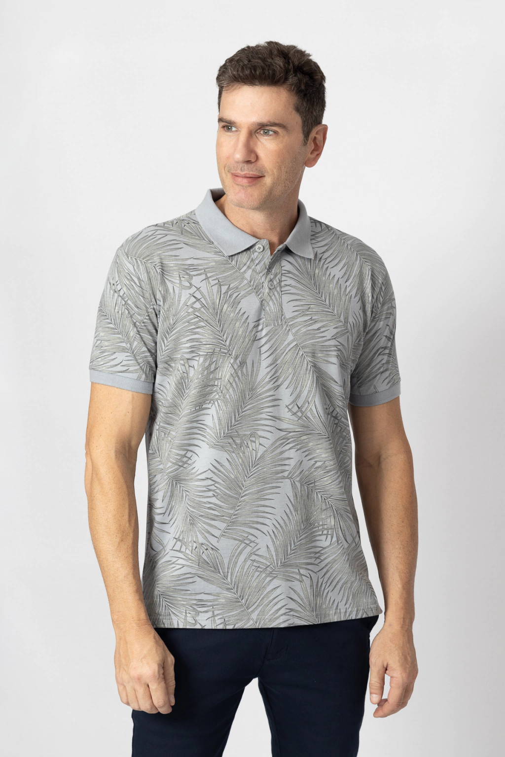 Descrição: Polo Estampada Slim Fit em Algodão Cinza