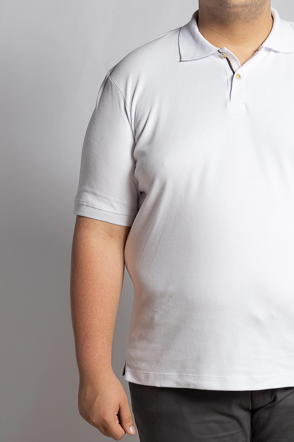 Descrição: Polo Masculina Plus Size Social Casual Algodão Malha Branca