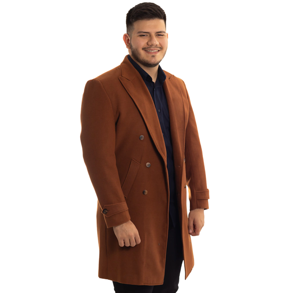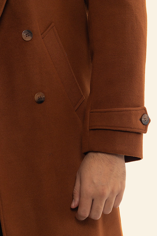 Descrição: Sobretudo Clássico Confort Lã prensada terracota, com botões extenos,com fendas laterais
