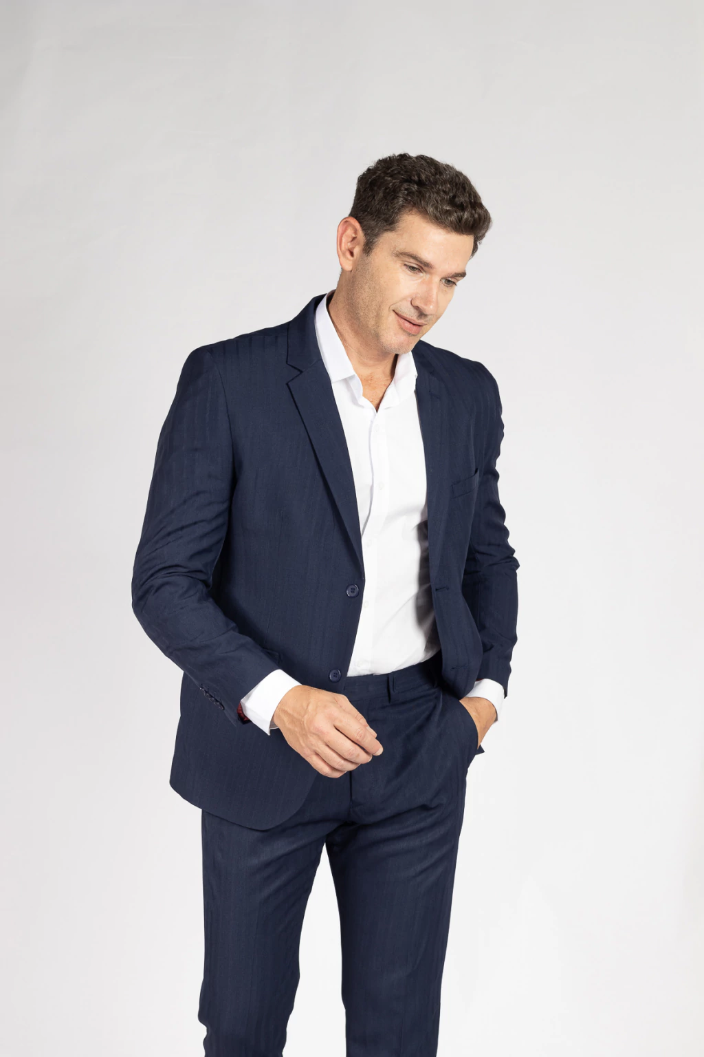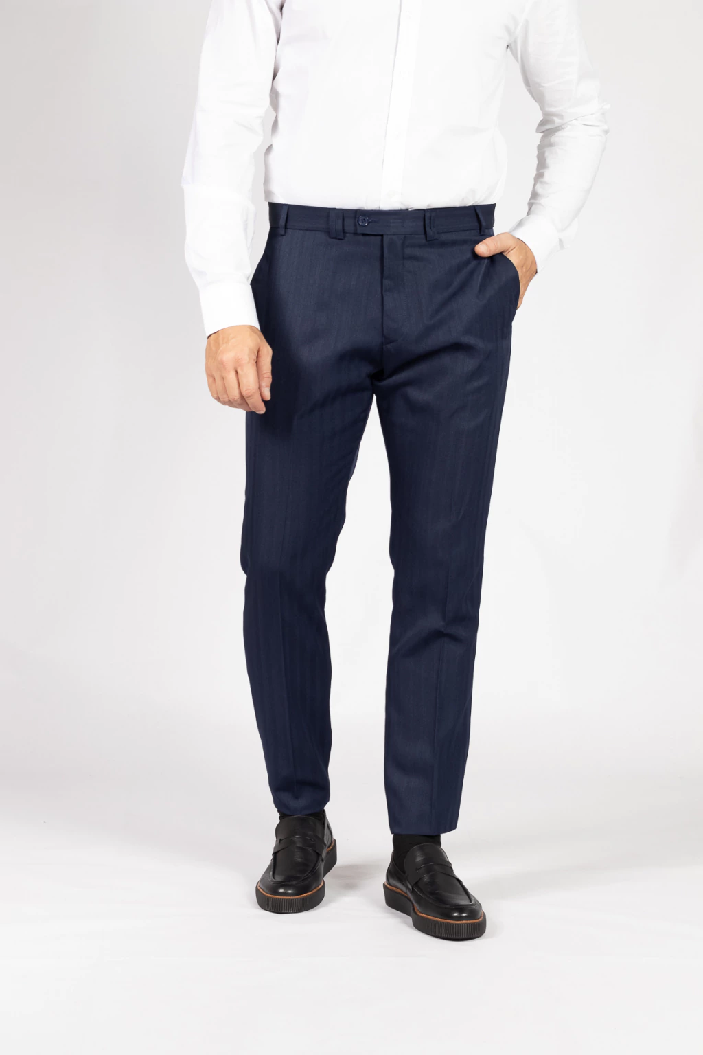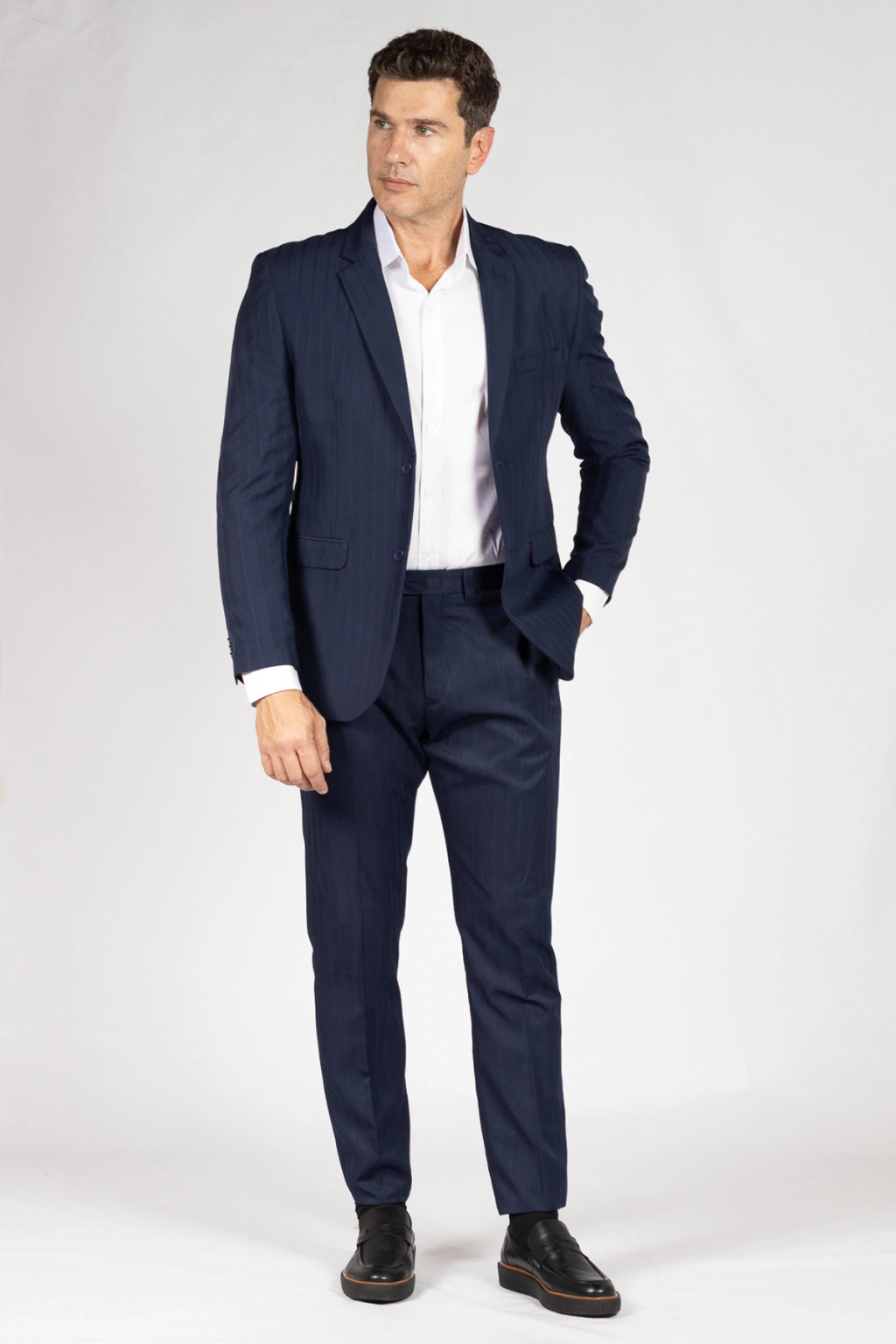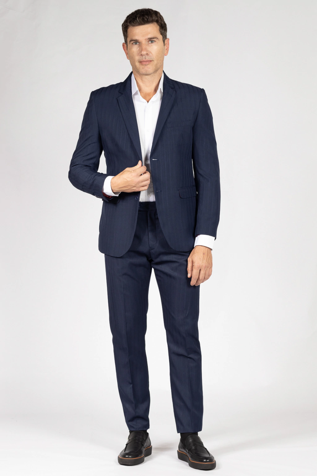 O terno de microfibra Azul Marinho semi slim tradicional é uma peça elegante que combina tradição com modernidade. Sua tonalidade distinta e corte semi slim oferecem versatilidade para diversas ocasiões. Feito de microfibra de alta qualidade, proporciona conforto excepcional e uma sensação suave ao toque. É uma declaração de estilo e sofisticação masculina, destacando-se como um ícone da moda contemporânea.