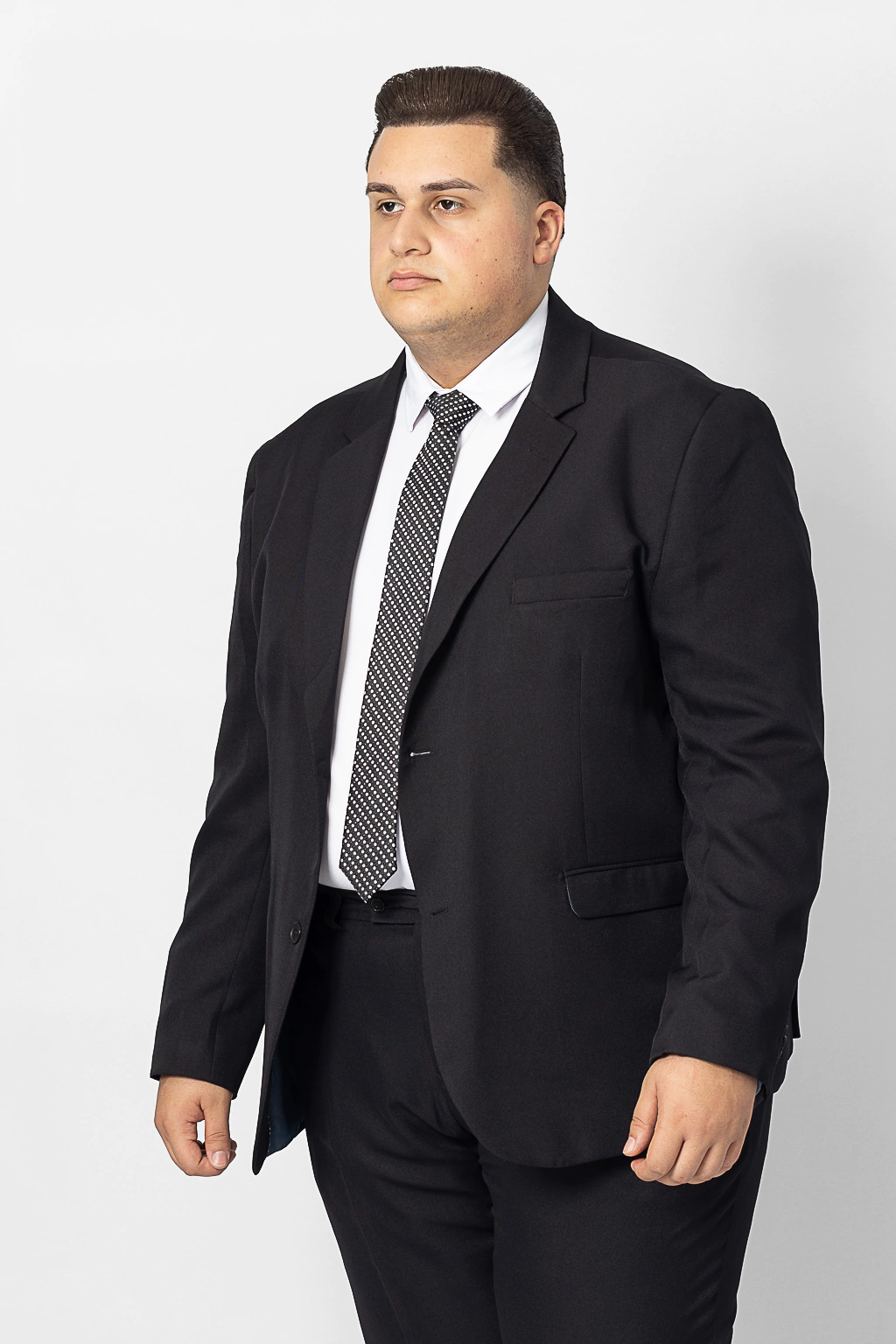 O terno de microfibra PLUS SIZE semi slim Preto é uma peça elegante que combina tradição com modernidade. Sua tonalidade distinta e corte semi slim oferecem versatilidade para diversas ocasiões. Feito de microfibra de alta qualidade, proporciona conforto excepcional e uma sensação suave ao toque. É uma declaração de estilo e sofisticação masculina, destacando-se como um ícone da moda contemporânea.