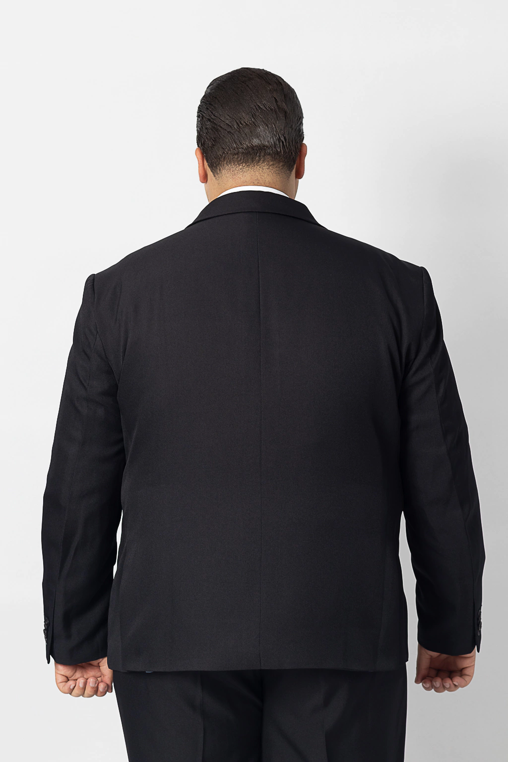 Descrição: Terno Microfibra Plus Size Preto com modelagem tradicional confort, conta com duas fendas laterais, duas fendas traseiras, calça sem barra e pregas e dois bolsos internos, sem colete.
