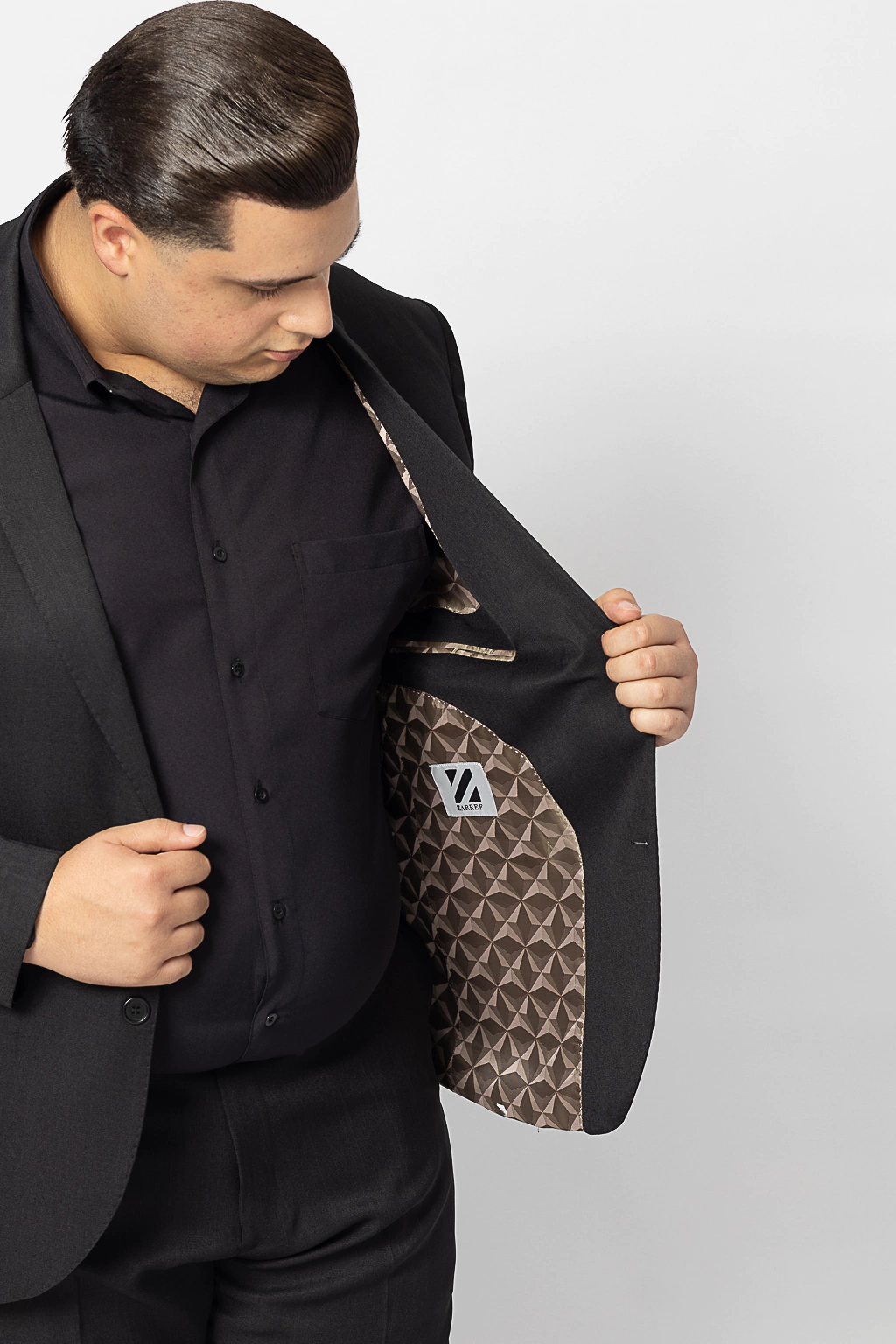 O terno de microfibra PLUS SIZE slim Preto é uma peça elegante que combina tradição com modernidade. Sua tonalidade distinta e corte slim oferecem versatilidade para diversas ocasiões. Feito de microfibra de alta qualidade, proporciona conforto excepcional e uma sensação suave ao toque. É uma declaração de estilo e sofisticação masculina, destacando-se como um ícone da moda contemporânea.