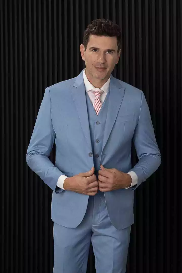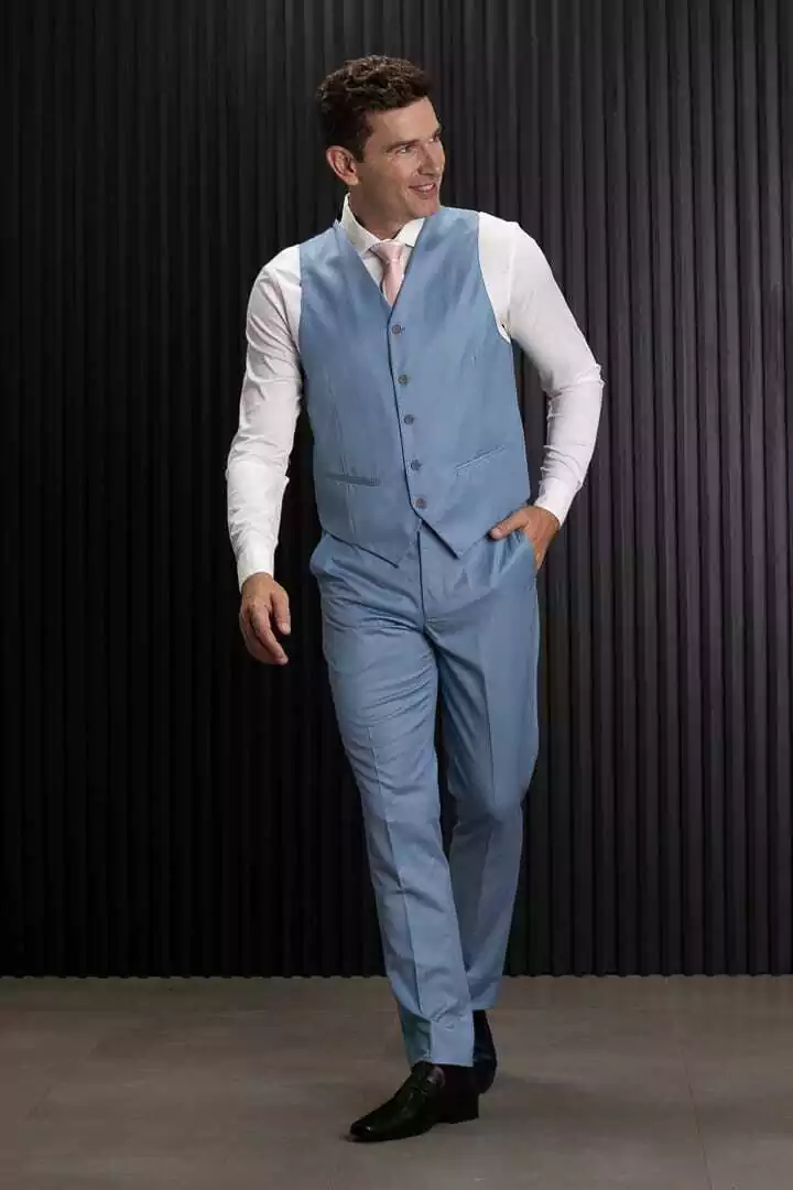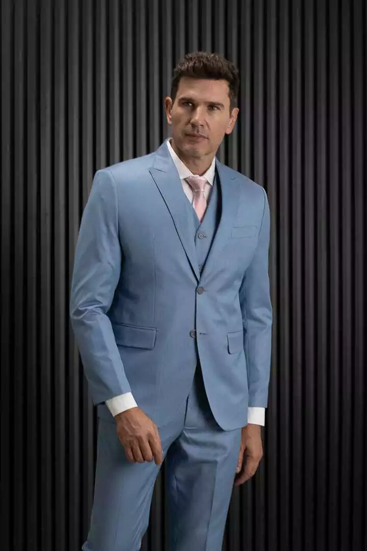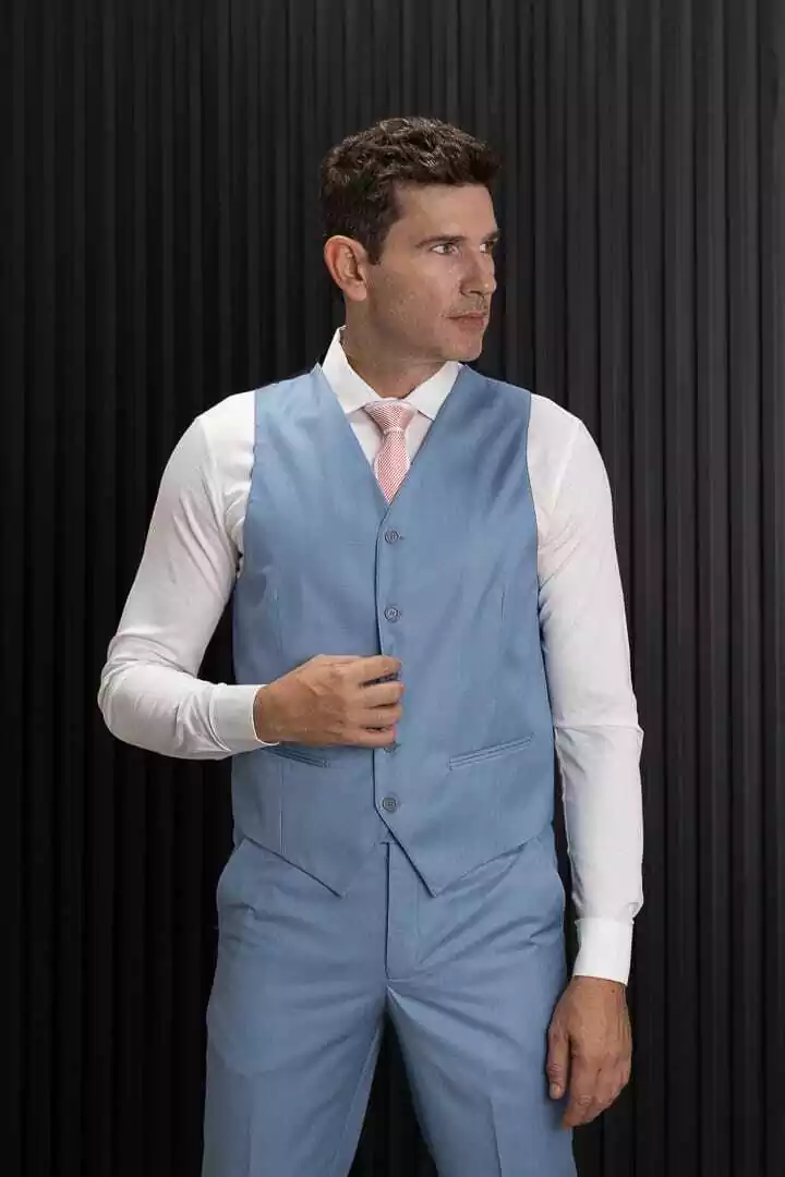 OBS: O modelo tem 1,84 m de altura e pesa 80kg - Veste paletó 54, Colete 54 e Calça 48