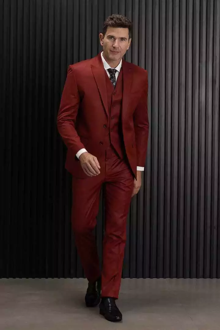 OBS: O modelo tem 1,84 m de altura e pesa 80kg - Veste paletó 54, Colete 54 e Calça 48