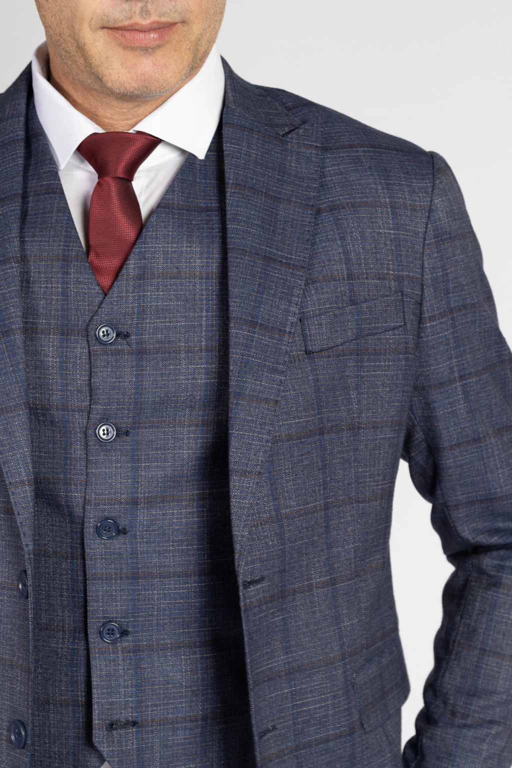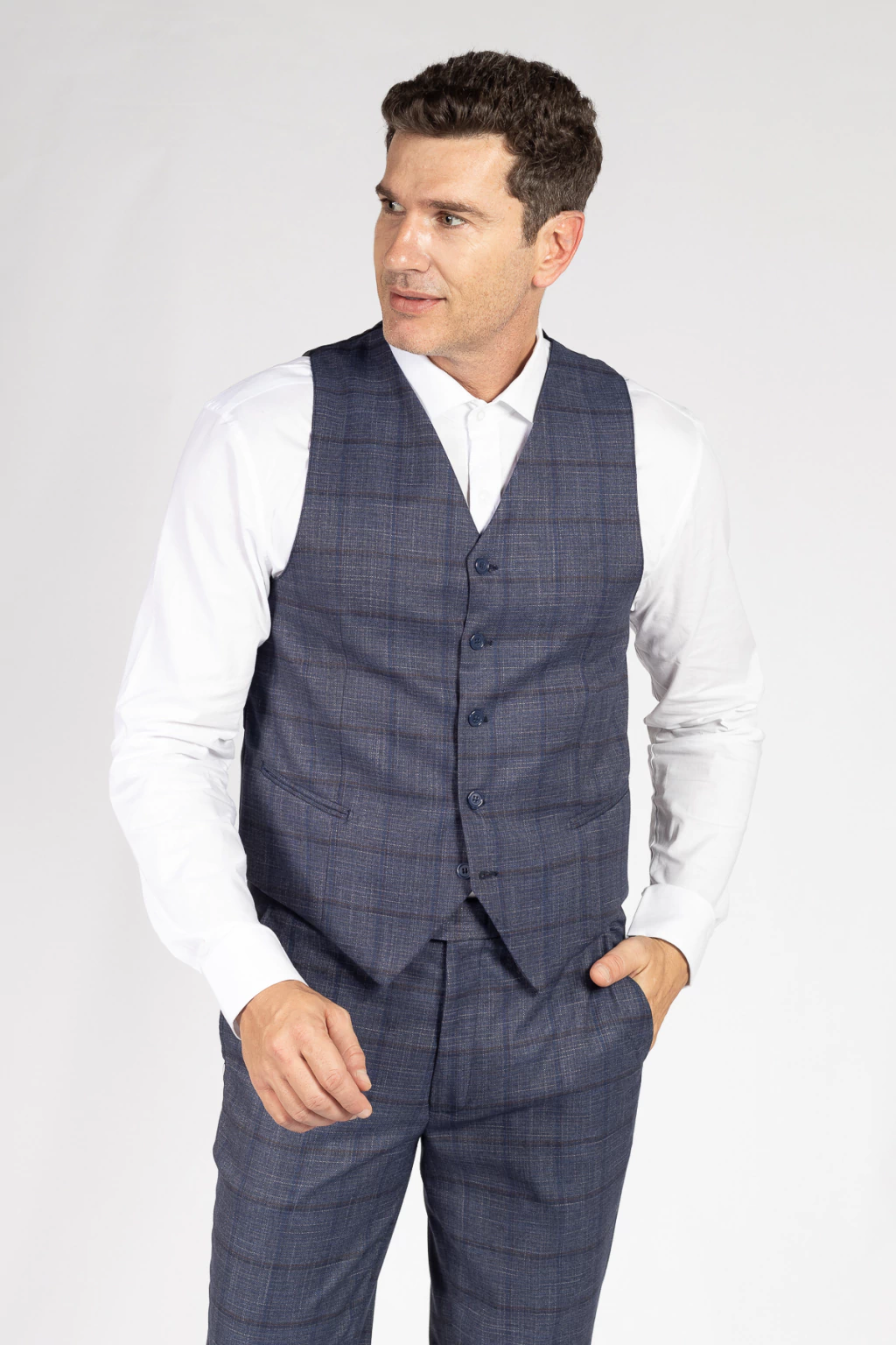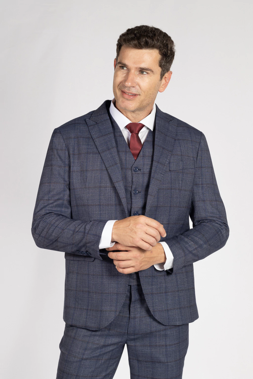 Descubra estilo e conforto com nosso Terno Slim Fit com Colete de Poliviscose Xadrez Azul Jeans. Feito para homens modernos, este conjunto oferece um ajuste impecável e elegância duradoura do príncipe de Gales. Perfeito para ocasiões formais, é a escolha ideal para quem busca sofisticação sem sacrificar o conforto. Eleve seu visual com nosso conjunto de terno e colete, e faça uma declaração de moda impactante.
